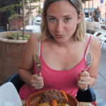 La remontée a été pour ma part très difficile ! Il faisait 41° à l’ombre, or nous étions en plein soleil, nous n’avions avalé que notre petit dej et il était 14h30… Résultat, un malaise, enfin le bad quoi 🙁 Val m’a pris un coca, ça m’a bien requinqué ! Le retour en voiture a été ultra facile, Marrakech est indiqué partout. La galère a débuté en entrant dans la ville…la voiture s’est arrêtée en plein milieu de la circulation une fois puis 2 puis 3 … puis 6 fois, on a bien cru ne jamais arriver ! Soulagement à l’arrivée et surtout de se dire que ça n’est pas arrivé en plein désert ! En rentrant à pied, nous nous sommes posés au Cyberpark, puis nous sommes allés manger en face la mosquée de la casbah, au restaurant El Andalusya. Le couscous T-faya avec les raisins secs est trop bon et la vue était très belle !