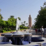 Le ventre bien rempli, nous prenons la carte que j’avais trouvé sur Lonely planet pour visiter le côté historique de la ville. Départ du riad, direction la mosquée de la Koutoubia, c’est un emblème de la ville et la plus grande mosquée de Marrakech. Ca valait la peine de la voir, nous n’y sommes pas rentrés mais avons visité tout le site extérieur.