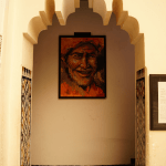 En partant, nous souhaitions nous diriger vers le musée de Marrakech, mais traverser les souks n’est pas chose facile… Donc on s’est un peu perdu dans un dédale de ruelles, d’échoppes et d’odeurs diverses, sans jamais voir un panneau ! Plusieurs locaux nous ont aidés, finalement, c’était plutôt très sympa de s’être paumés. En arrivant, au musée (entrée 50 dirhams), nous avons été éblouis par cette grande salle sous dôme. C’est très beau, mais très vite nous avons remarqués que le musée était un peu voir très vide…
