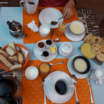 Nous démarrons cette belle journée par un copieux petit déjeuner (compris dans notre séjour), pris autour de la piscine et en compagnie des tortues qui se promènent. Nous avions : une soupe semoule avec du lait et huile d’olive, yaourt maison, 2 crêpes, 2 quatre-quarts, 4 autres pâtisseries dont je ne connais pas le nom, une omelette et un assortiment de confitures, beurre, pain. Le rêve pour bien démarrer la journée !