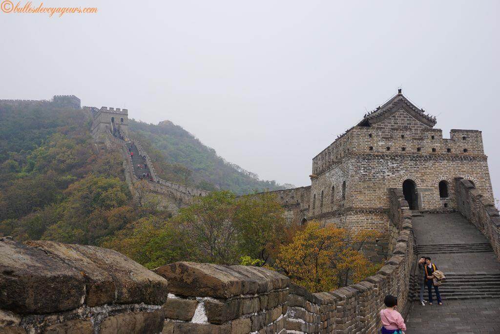 A noter pour s’y rendre depuis Pékin : prendre le bus 916 express à la gare de Donzhimen jusqu’à son terminal. Ensuite prendre un taxi jusqu’à la muraille ou comme nous : repos à l’hôtel puis transfert le lendemain matin et au retour par votre hébergement (gratuit pour nous).